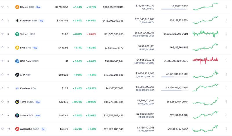 Bitcoin superó nuevamente la marca de u$s 47.000 al día siguiente, mientras que Ethereum se acercó a la marca de u$s 3.500. El alto volumen de monedas negociadas también anima a los inversores a invertir en este activo, con un aumento del 18,38 % en el día. La semana pasada, el precio de Bitcoinaumentó un 12,63 por ciento después de una caída en los meses anteriores. El lunes, los precios de Bitcoin alcanzaron un máximo de tres meses y el repunte continuó el martes.