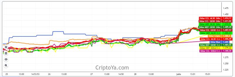 Tras los anuncios, en varias billeteras virtuales el dólar se vende este lunes a través de stablecoins en precios superiores a los $ 1400: la billetera llamada "Satoshi Tango" era la que más alto tenía la cotización a $ 1438,55; mientras que Latamex y Saldo también estaban por arriba de ese piso.