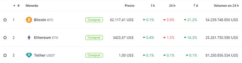 Después de superar los u$s 63.000 en la jornada de ayer, Bitcoin dio marcha atrás y en las últimas 24 horas pasó a ubicarse cerca de los u$s 62.100 de acuerdo a los datos de Coingecko, el sitio especializado en seguimiento de los precios de los principales criptoactivos.