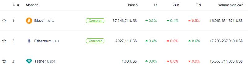 De hecho, este martes la criptomoneda más popular del mercado creció por 0,4% hasta ubicarse alrededor de los u$s 37.246. En la última semana, sin embargo, acumuló una baja del 0,5%.