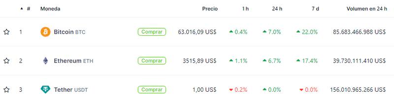 El mercado de las criptomonedas extendió su racha alcista este jueves 29 de febrero, impulsado desde la jornada de ayer por Bitcoin (BTC), que no paró de crecer por encima de los u$s 60.000, una marca que no se veía desde el 2021.