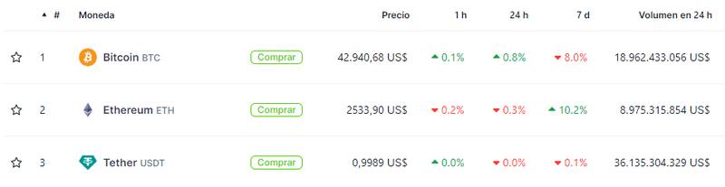 Para Ethereum (ETH) fue el caso contrario. La segunda criptomoneda más relevante del mercado venía de una racha alcista que llegó a su fin este martes, cuando la cotización cayó por 0,3% y se consolidó cerca de los u$s 2.500.