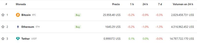 Al momento de escribir esta nota, el token estrella opera a u$s 25.958, lo que se traduce en una caída del 0,9% en las últimas 24 horas. Si extendemos el plazo de tiempo a los últimos 14 días, BTC acumula una baja aún más significativa; del 11,5%.