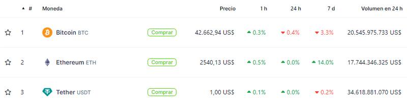La semana pasada, BTC superaba los u$s 46.000 y rozaba la marca de los u$s 47.000. Hoy, en cambio, la criptomoneda más grande y popular del mercado se consolidó cerca de los u$s 42.600.