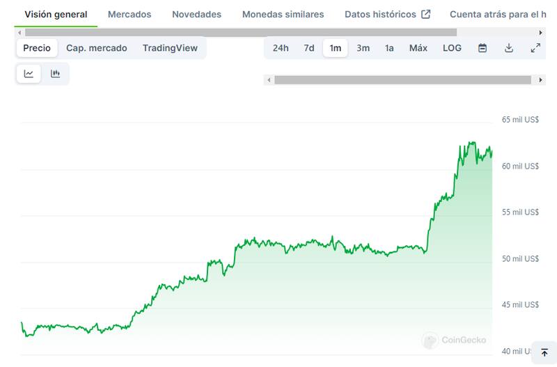 Tan sólo en el mes de febrero, la criptomoneda más antigua y popular del mundo Bitcoin (BTC) creció más del 40% y llegó a superar los u$s 63.000; una cotización que los inversores no veían desde el 2021.