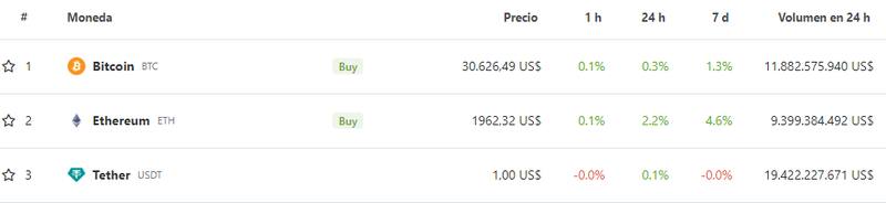 La calma, entonces, volvió al mercado y el token estrella se recuperó rápidamente. Al momento de escribir esta nota, BTC opera a u$s 30.626, lo que se traduce en un leve aumento de precio por 0,3% en 24 horas.