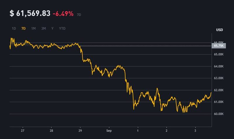 Con una suba del 1,6% en las últimas 24 horas, Bitcoin (BTC) vuelve a ubicarse por encima de los u$s 61.000 sobre el cierre de la semana. En ese sentido, este viernes 4 de octubre cotiza a u$s 61.569.