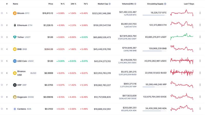Bitcoin, la principal criptomoneda del mercado, abrió el día con una baja superior al 1% y sigue por debajo de los u$s 17.000. Mientras que, por su lado, Ethereum cayó 2% y se ubica en el rango de los u$s 1200. Incluso BNB, la criptomoneda de la empresa Binance, cayó más de 1%.