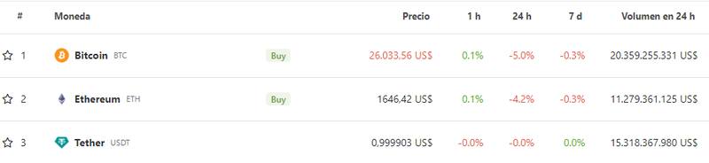 Bitcoin (BTC), la criptomoneda más antigua y popular del mercado, cayó por un 5% en las últimas 24 horas y, consecuentemente, perdió la marca de los u$s 27.000 de ayer.