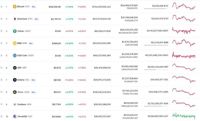 Según la información de CoinMarketCap, la cotización del BTC subió un 1,6% durante el último día para llegar a un valor de u$s 38.500. Ethereum (ETH) tuvo un rendimiento similar, con una variación positiva del 1,3% en las últimas 24 horas que dejó al activo con una cotización por debajo de los u$s 2700.