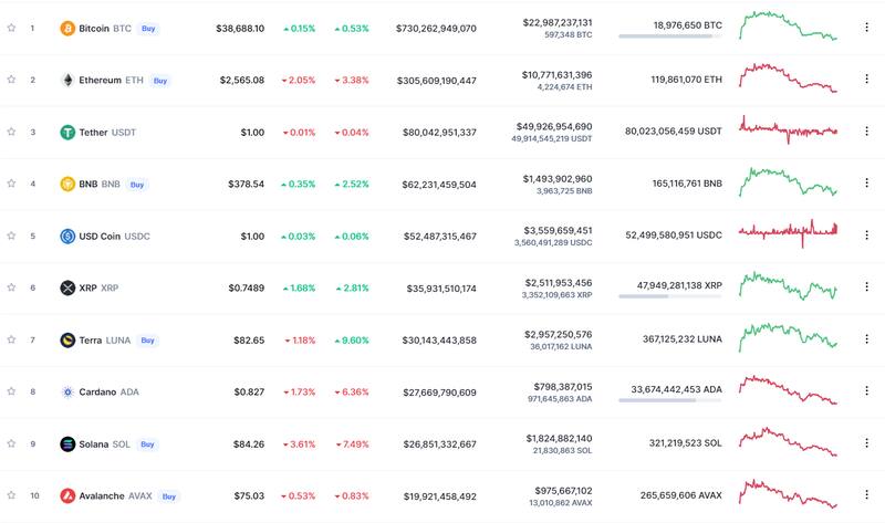 El precio de Bitcoin cayó hoy por debajo del nivel de $39,000 después de permanecer volátil en los últimos días. La criptomoneda más popular del mundo se cotizaba con un 3% de caída llegando a los US$ 38,315. Bitcoin ya presenta una caída del 17% en 2022 (año contra año). Sin embargo, está un 30% lejos de su máximo histórico de cerca de US$69,000 que alcanzó en noviembre del año pasado.