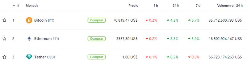 Bitcoin (BTC), la criptomoneda más antigua y popular del mercado, se disparó en las últimas 24 horas y no sólo perforó la barrera de los u$s 60.000 que veía en la jornada de ayer, sino que pasó a ubicarse alrededor de los u$s 70.819.