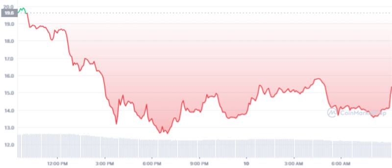 La cripto pasó a valer u$s 15 en los últimos días, mientras que a nivel semanal perdió un 48% de su cotización según la información disponible en el portal CoinMarketCap.