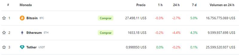 En las últimas 24 horas, sin embargo, el precio de la criptomoneda pionera cayó por 2,7% hasta ubicarse alrededor de los u$s 27.498.