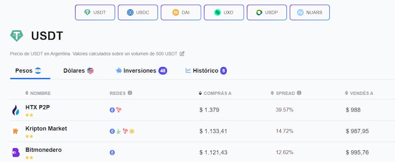 En concreto, el sistema peer to peer (P2P) de HTX y la plataforma Kripton Market ofrecen estos valores para USDT. En este sentido, quienes posean "dólares cripto" (stablecoins) podrían volcarse hacia estas empresas y vender sus tenencias por un tipo de cambio más favorecedor y con menor riesgo que el que ofrecen los arbolitos de Florida.