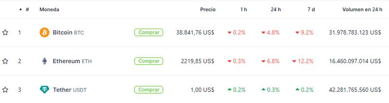 Ethereum (ETH), por su parte, tampoco tuvo mucha suerte y marcó una caída del 6,8% en su precio en el último día. Así, la segunda criptomoneda más relevante del mercado se consolidó cerca de los u$s 2.200.