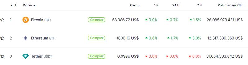 A pesar del impulso alcista general, el token más antiguo y famoso del mundo, Bitcoin (BTC), no registró ganancias significativas. Más bien, dio un pequeño paso para acercarse al nivel de soporte crítico de los u$s 68.500.