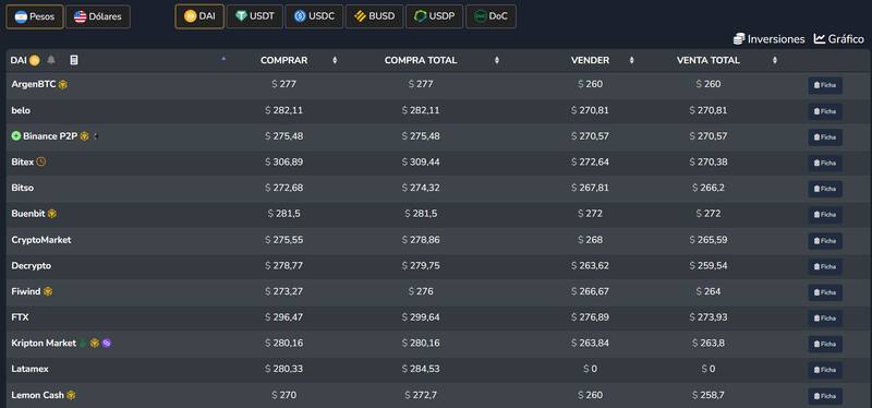 Por su lado,el dólar Bitcoin, dólar cripto y las stablecoins cotizan entre $ 277 y $ 294 para la venta y entre $ 260 y $ 277 para la venta.