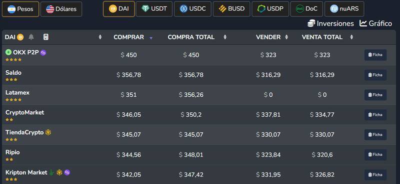Hay otra cotización que todavía se mantiene muy alto: el dólar cripto. Según datos lo informado por CriptoYa.com, hay algunas plataformas que venden el dólar Bitcoin -también conocido como stablecoins atadas al dólar- ya lo hacen en $450, mientras que otras cotizaciones lo ponen arriba de los $ 350 para el futuro cercano.