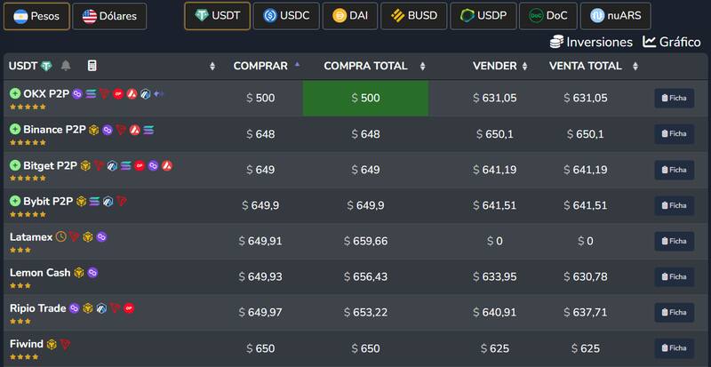 Por otro lado, los exchanges que estiman los precios más altos están comercializando la divisa digital en más de $700. Cabe destacar que casi todas estas cotizaciones se dan en protocolos de intercambio P2P. Este tipo de compra ventas se hacen de usuario a usuario, muy parecido a venderle dólares a un conocido, por lo que el precio es acordado entre las partes y es más representativo del mercado que cuando se hacen a través de un exchange.