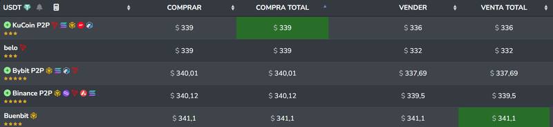 En comparación, la información sobre el dólar Bitcoin pone a las monedas estables en los $ 339 como mínimo, mientras que en promedio se pueden conseguir por 340. Los más rentables para comprar la criptomoneda actualmente son: