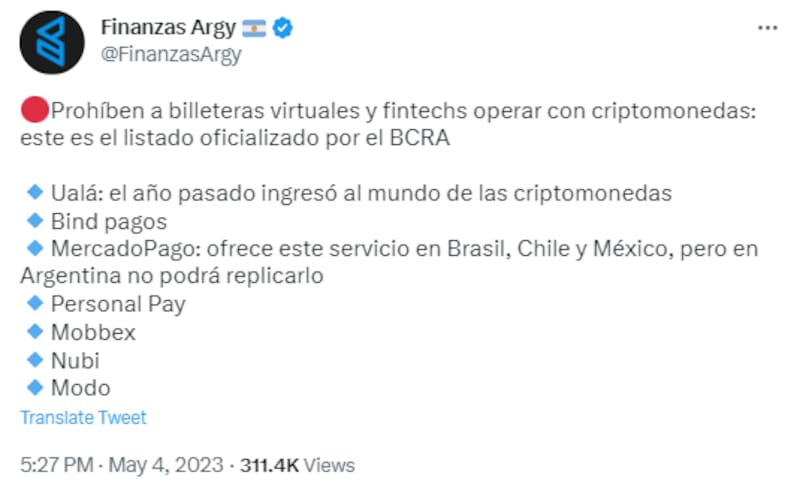 En un contexto donde 1 de cada 10 adultos argentinos operan criptomonedas (según un informe de Chainalysis), el Banco Central (BCRA) determinó que las billeteras virtuales que ofrecen cuentas de pago no podrán "realizar ni facilitar a sus clientes las operaciones con activos digitales, incluidos los criptoactivos".