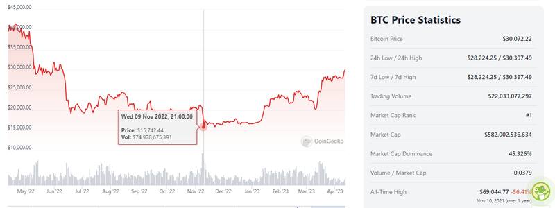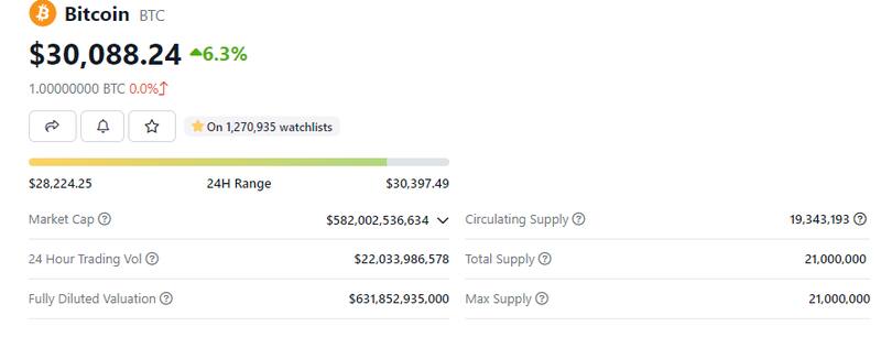 La criptomoneda hoy está cotizando en u$s 30.060 y ganó casi un 6% desde principios de mes, tras subir un 23% en marzo.