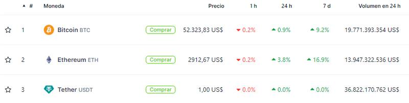 En concreto, el token estrella pasó a ubicarse alrededor de los u$s 52.323 tras un leve aumento de 0,9% en las últimas 24 horas. Su desempeño fue aún mayor en la última semana, cuando acumuló un alza de 9,2% en su precio.
