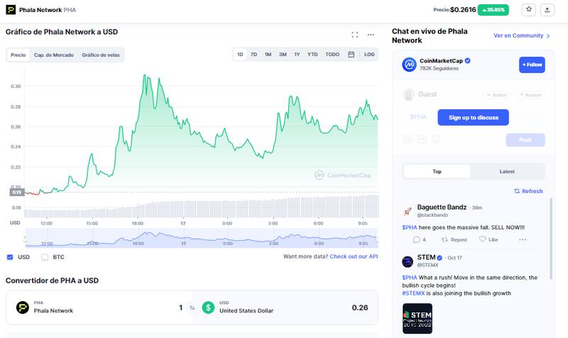 El primer caso es un token perteneciente a la empresa Phala Network (PHA), la cual se dedicada al desarrollo de sistemas de privacidad para datos almacenados en la nube.