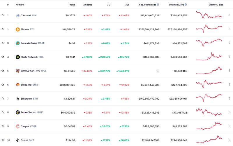 Según explican en la plataforma mencionada, las tres criptomonedas más destacadas de las últimas 24 horas son altcoins con un nivel relativamente bajo de popularidad.