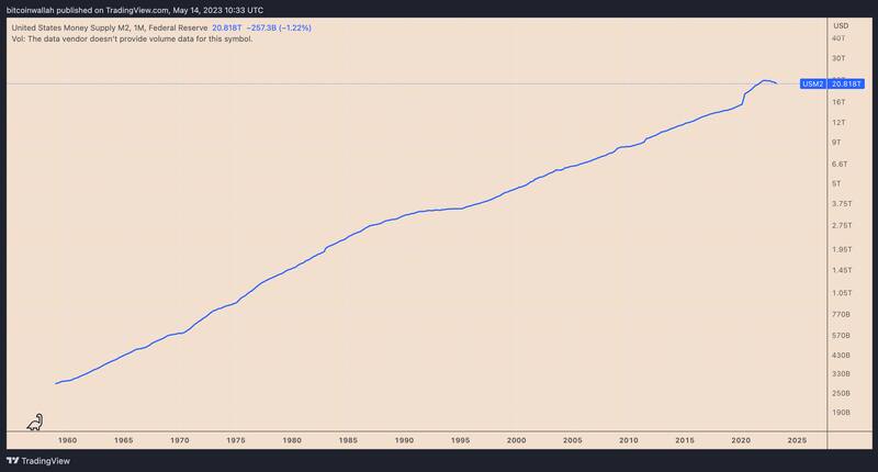 El llamado M2 representa el efectivo en circulación y los dólares en cuentas bancarias y del mercado monetario. Este indicador se disparó más de un 40% durante la pandemia por la emisión moneteria, llegando al máximo de u$s 21.84 billones a principios de 2022.
