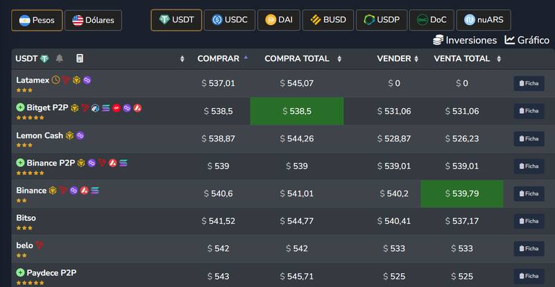 En los diferentes exchanges se puede conseguir la criptomoneda USDT a $537 -el precio incluye los costos adicionales de operación y lo lleva a $545- lo que convierte a esta opción en una forma de dolarizarse casi $10 más barata.