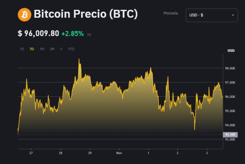 Con una leve suba del 1,6% en las últimas 24 horas, Bitcoin (BTC) dejó atrás la zona de los u$s 95.000 -ahora cotiza a u$s 96.009- y el mercado se esperanza con un salto histórico antes de culminar el 2024.