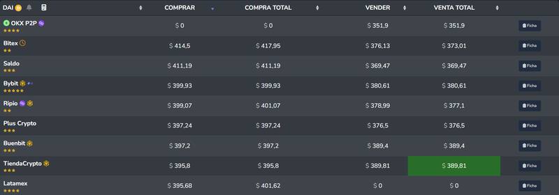 Pero hay otra cotización paralela que todavía no confía en las señales del mercado y sigue cotizando alto. Sucede que según datos del portal CriptoYa.com, hay algunas plataformas que venden el dólar Bitcoin -también conocido como stablecoins atadas al dólar- a más de $ 400.