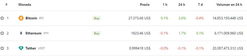 La criptomoneda más popular del mundo Bitcoin (BTC) evidenció una corrección positiva por la noche y actualmente opera alrededor de los u$s 27.373, superando así la barrera de los u$s 26.000.