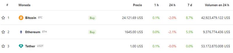 Hace tan sólo unos días, Bitcoin (BTC) alcanzaba la cotización más alta del mes, cerca de los u$s 25.000. Hoy, en cambio, la criptomoneda más comercializada se enfrió y se ubica en u$s 24.121,69.
