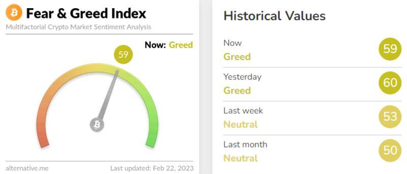 A pesar de la incertidumbre y el riesgo de una política monetaria más agresiva con las criptomonedas, se percibe un sentimiento general de "avaricia" en el mercado, según indica el "Fear & Greed Index". Se trata de un indicador al que recurren los inversores para tantear el comportamiento de los traders y del ecosistema, en grandes rasgos.
