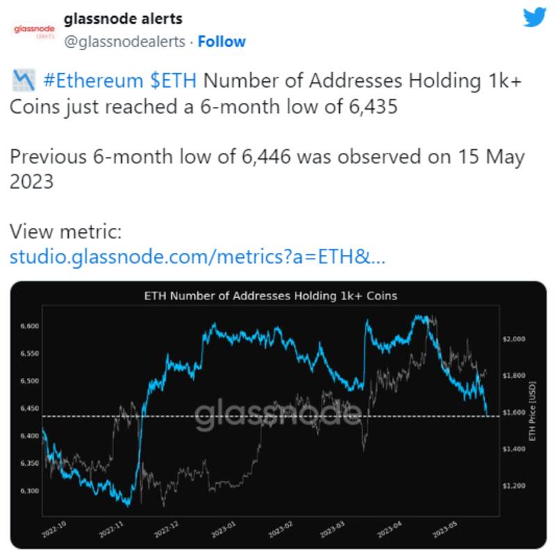Según datos recientes, las ballenas podrían estar frenando a los toros ETH. Esto se desprende de que las direcciones que tienen más de 1000 ETH no están interesadas en volver a acumular ETH en su nivel actual.