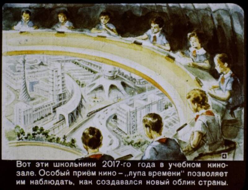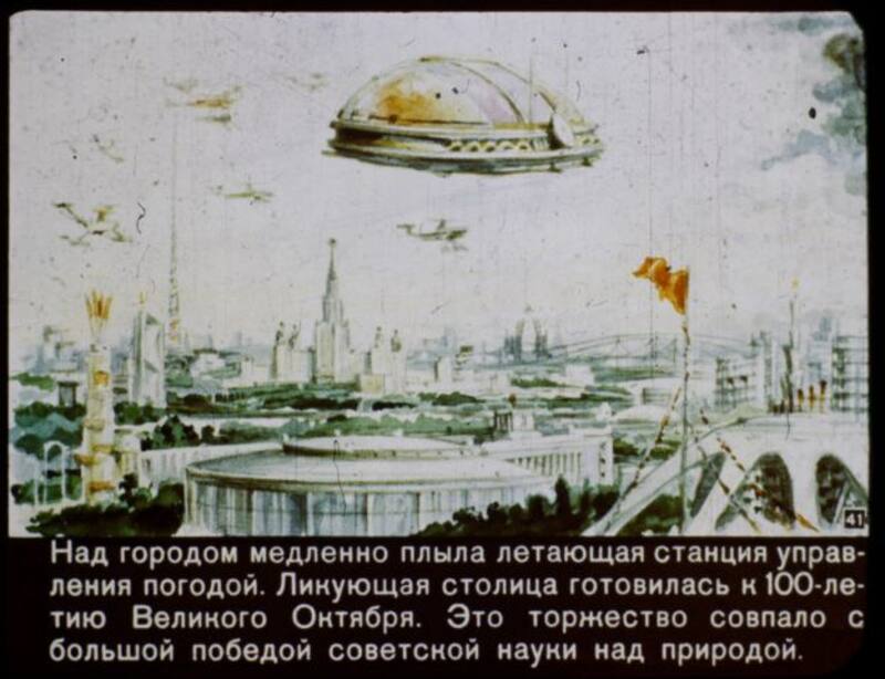En el mundo soviético del futuro, los rusos son responsables de, por ejemplo, trenes que cruzan el estrecho de Bering y de una represa capaz de detener las corrientes frías del Ártico. El relato, escrito por V. Strukova y V. Schevchenko e ilustrado por L. Smekhov, se publicó en 44 tiras de películas o diapositivas para Diafilm, un dispositivo para proyectar imágenes bastante popular en la década del 60.