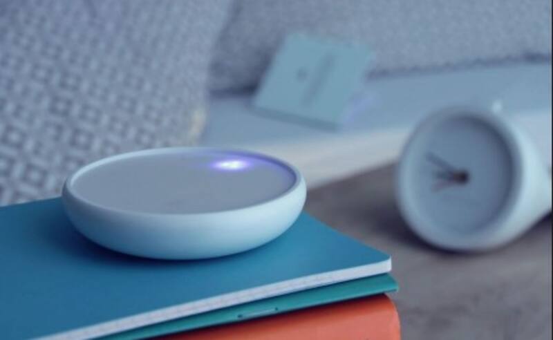 El dispositivo proyecta un anillo de luz azul en el techo que se contrae y expande.