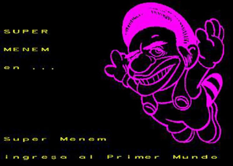 Es imposible explicar la década del 90 en la Argentina sin hablar de Carlos Saúl Menem, no solo por las políticas de su gobierno, sino también por su figura y su carisma, que generaba atracciones y rechazos. Su gravitación fue tal que tuvo su propio videojuego, "El Super Menem Bros", creado por el humorista y periodista uruguayo Jorge Barale. Fue uno de los primeros de su tipo de producción nacional y su trama era sencilla pero ingeniosa: se trataba de ayudar al protagonista a llevar al país "al primer mundo".