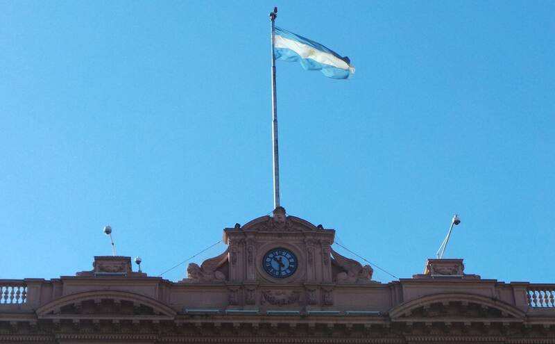A los costados de la bandera nacional se pueden ver dos cámaras domo. Crédito foto: Pablo Martín Fernández.