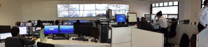 Imagen panorámica del centro de monitoreo de la Policía Metropolitana