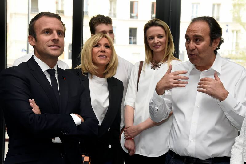Emmanuel Macron junto a su esposa Brigitte y el empresario Xavier Niel.