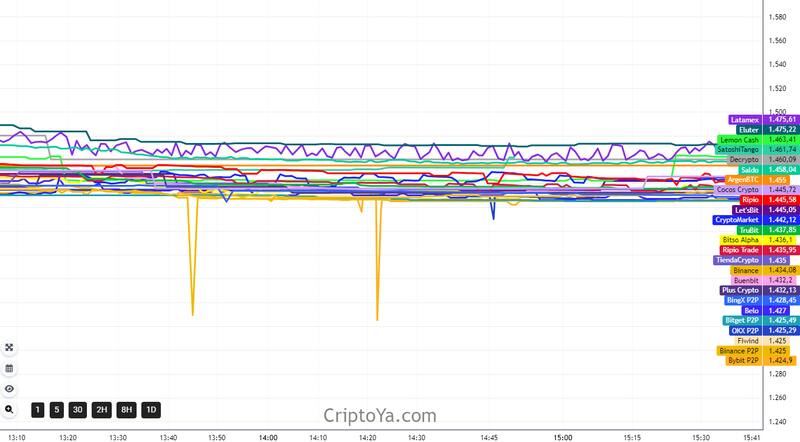 Ninguna de las distintas billeteras que se operan en esta stablecoin supera los $ 1500 y de hecho hay al menos siete opciones que no superan los $ 1430 que cotiza el dólar blue este martes.