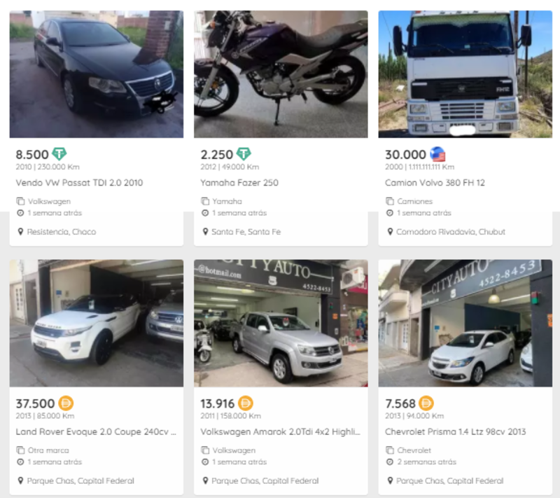 Por un lado, la plataforma CryptoAvisos permite a los usuarios vender motos, automóviles, camionetas y camiones en dólares digitales.