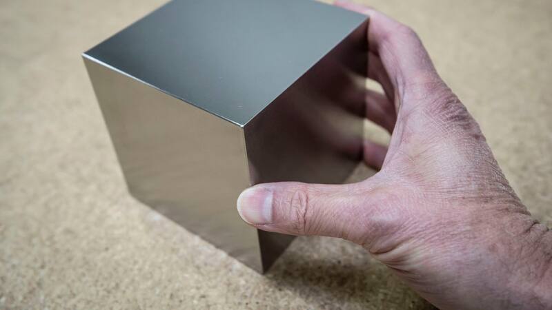Un bloque de 4 pulgadas de metal, que puede caber fácilmente en la palma de la mano, pesa unos 18 kilos.