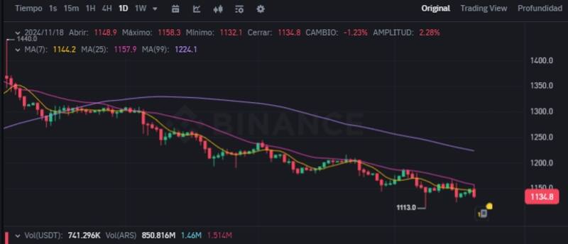 El dólar cripto USDT cotizó este viernes en el exchange Binance a un precio de un promedio de $ 1.134 alrededor de las 12.10 hs. Se trata de un precio conveniente para quienes busquen hacerse de esta moneda de manera ágil y sin restricciones.