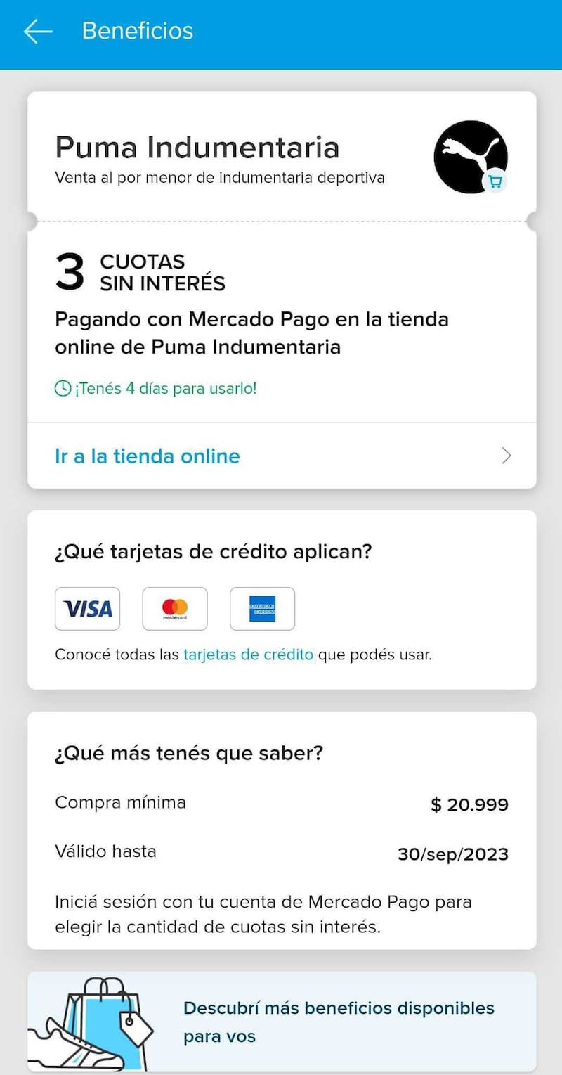 En este caso, es válido pagando con Mercado Pago en la tienda online de Digital Sport. Las tarjetas deben ser Visa, Mastercard o American Express. Vigencia hasta el 31 de octubre de 2023.