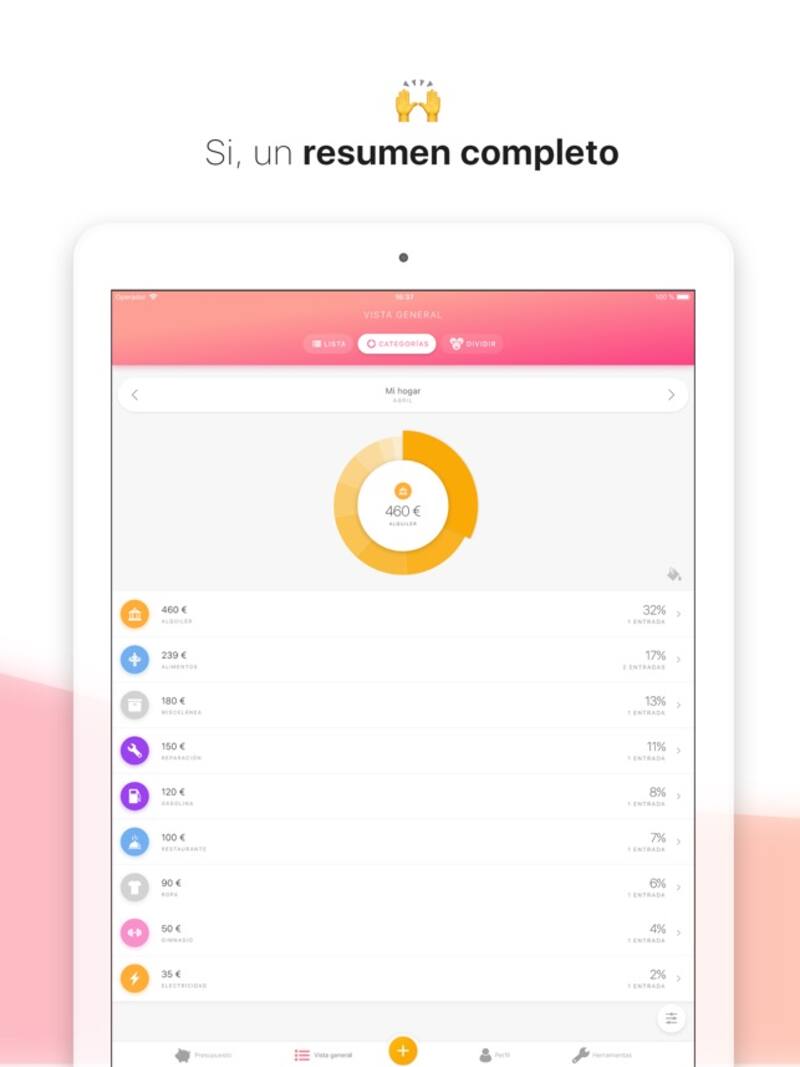 También se pueden programar gastos recurrentes y tiene una muy buena funcionalidad para dividir gastos entre varios y "arreglar cuentas" con amigos o familiares.